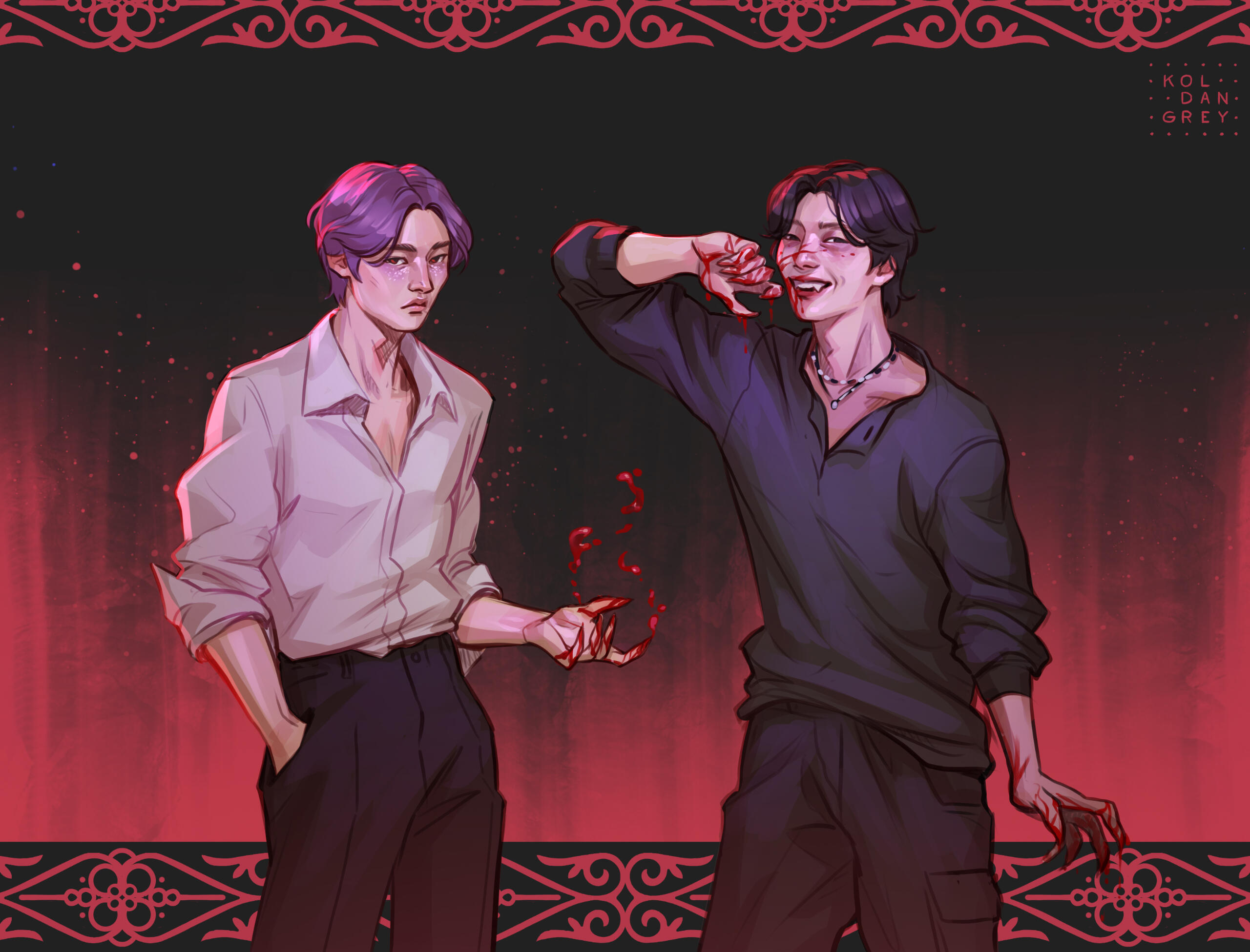commission artwork by. KoldanGreyArt / twitter posts: minhyang, hyunchanlix, binseungsung
